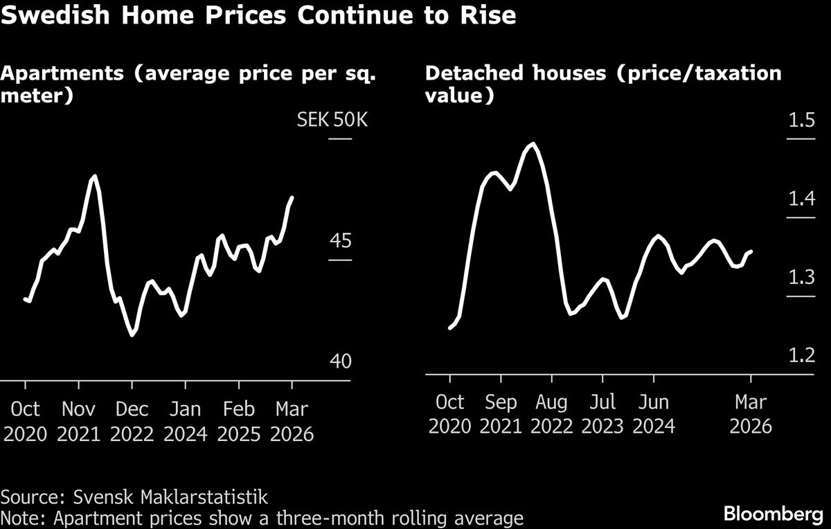 Swedish apartment prices rose to the highest in almost four years in a sign that a nascent recovery on the housing market continued despite new worries over the economic impact of the Iran war....