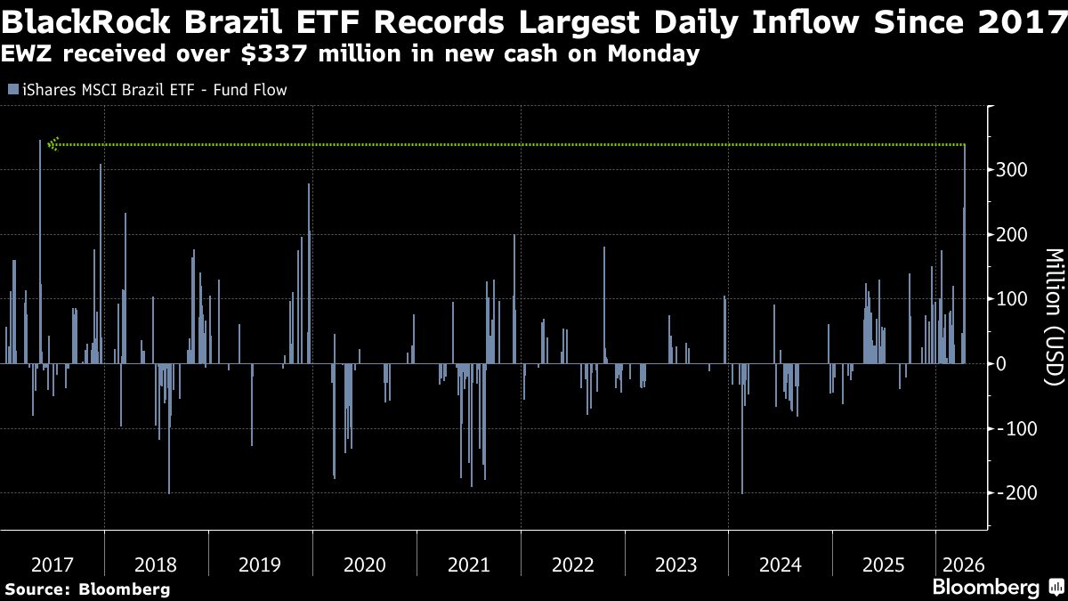 BlackRock Brazil Fund Records Largest Daily Inflow Since 2017