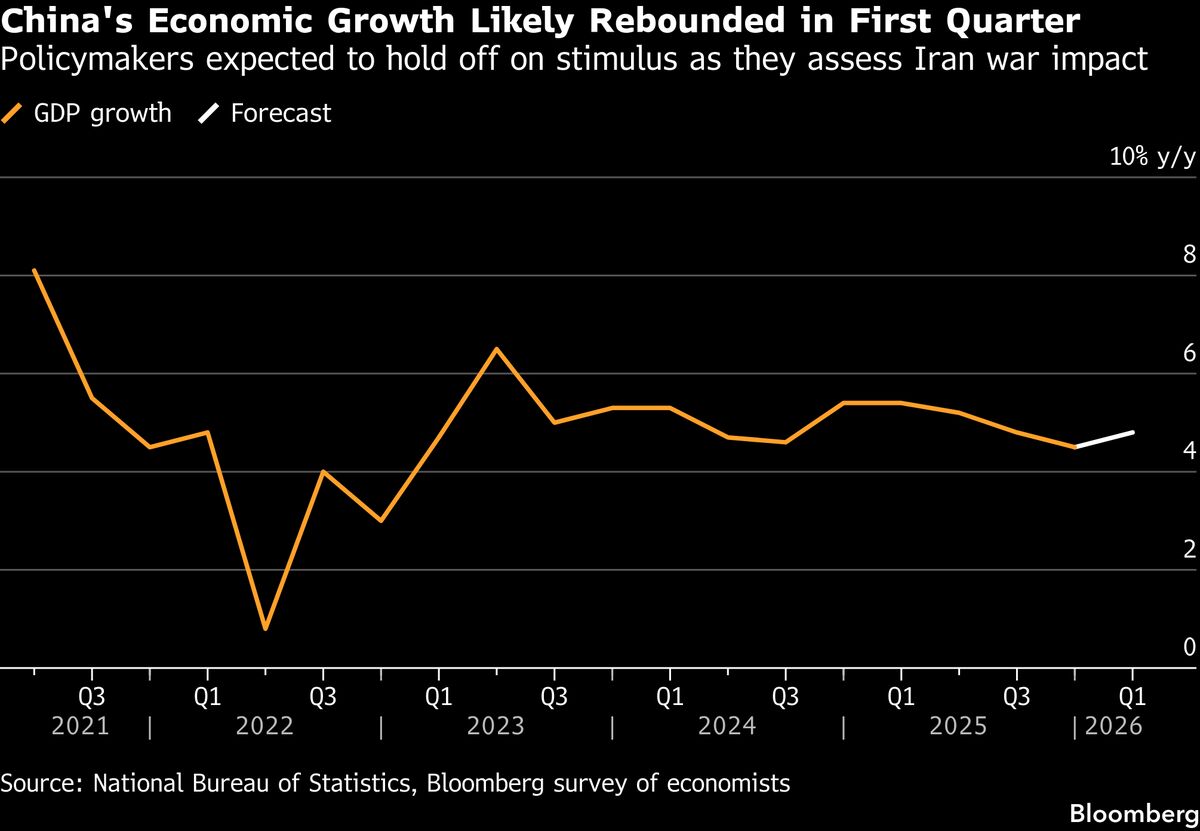 China’s growth likely rebounded in the first quarter of 2026, offering policymakers time to assess the impact of the Iran war on the world’s second-largest economy before stepping in with stimulus....