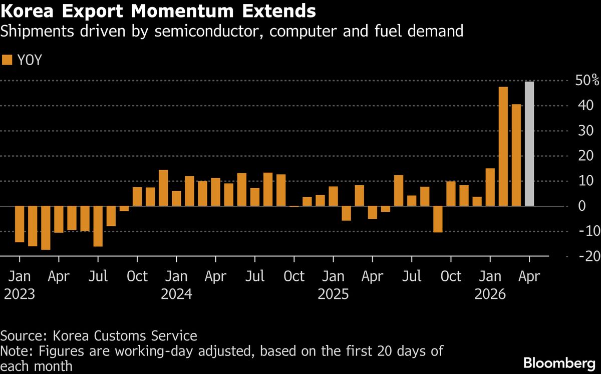 South Korea’s export growth remained robust in early April, signaling resilient external demand even as surging oil prices and a weaker currency raise risks for inflation and growth....