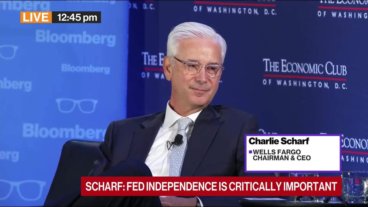 Wells Fargo & Co. Chief Executive Officer Charlie Scharf says the US economy is extremely strong, but he says consumers are adjusting their spending due to the war in Iran. He says many businesses are "nervous." He spoke Monday during an interview with David Rubenstein at the Economic Club of Washin...