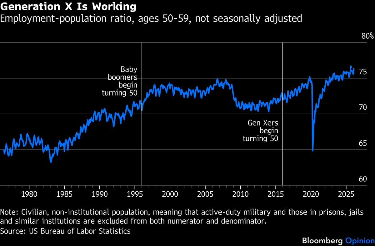 Amid uncertain times in the job market one thing stands out — Americans in their 50s are working like never before. The employment-population ratio for this age group, which comprises the heart of Generation X, hit an all-time high in September and remained pretty close in February even though these...