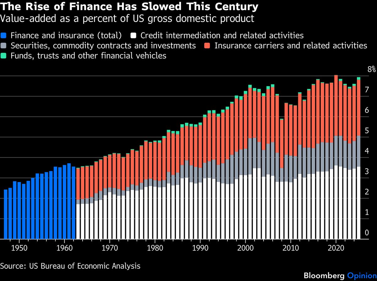 During and immediately after the financial crisis of 2008, there was much talk and academic research about the rapid growth of the US financial sector over the preceding decades and whether that was good or bad. Since then, finance’s growth relative to the rest of the economy has slowed to a crawl,...