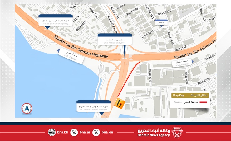 وزارة الأشغال: غلق المسار الأيمن للمرور المتجه شرقًا إلى المحرق