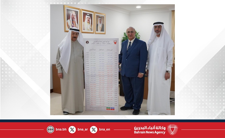 المنامة في 26 فبراير/ بنا / استقبل معالي الشيخ عبدالرحمن بن محمد بن راشد آل خليفة رئيس المجلس الأعلى للشئون الإسلامية رئيس اللجنة العليا للتقويم البحريني، في مكتبه اليوم، الأستاذ الدكتور وهيب عيسى الناصر أستاذ الفيزياء التطبيقية عضو اللجنة العليا للتقويم البحريني، حيث أهدى معاليه لوحة تتضمن الحسابات...