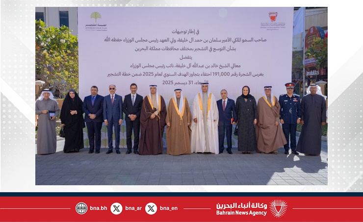 المنامة في 31 ديسمبر/ بنا / في إطار توجيهات صاحب السمو الملكي الأمير سلمان بن حمد آل خليفة، ولي العهد رئيس مجلس الوزراء حفظه الله، بشأن التوسع في التشجير بمختلف محافظات مملكة البحرين، قام معالي الشيخ خالد بن عبد الله آل خليفة، نائب رئيس مجلس الوزراء، يشاركه عدد من أصحاب السعادة الوزراء وكبار المسؤول...