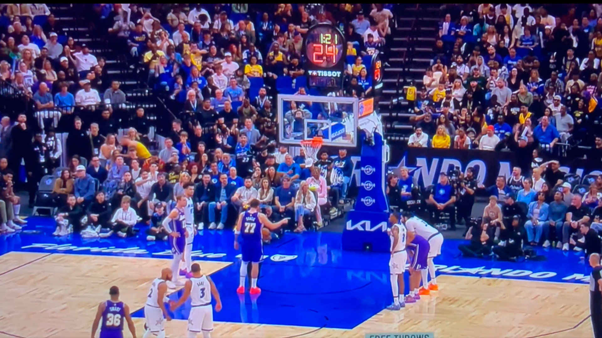 Doncic desvela ataques familiares del jugador georgiano Goga Bitadze hacia él, antes de lanzar un tiro libre, durante el Magic-Lakers
