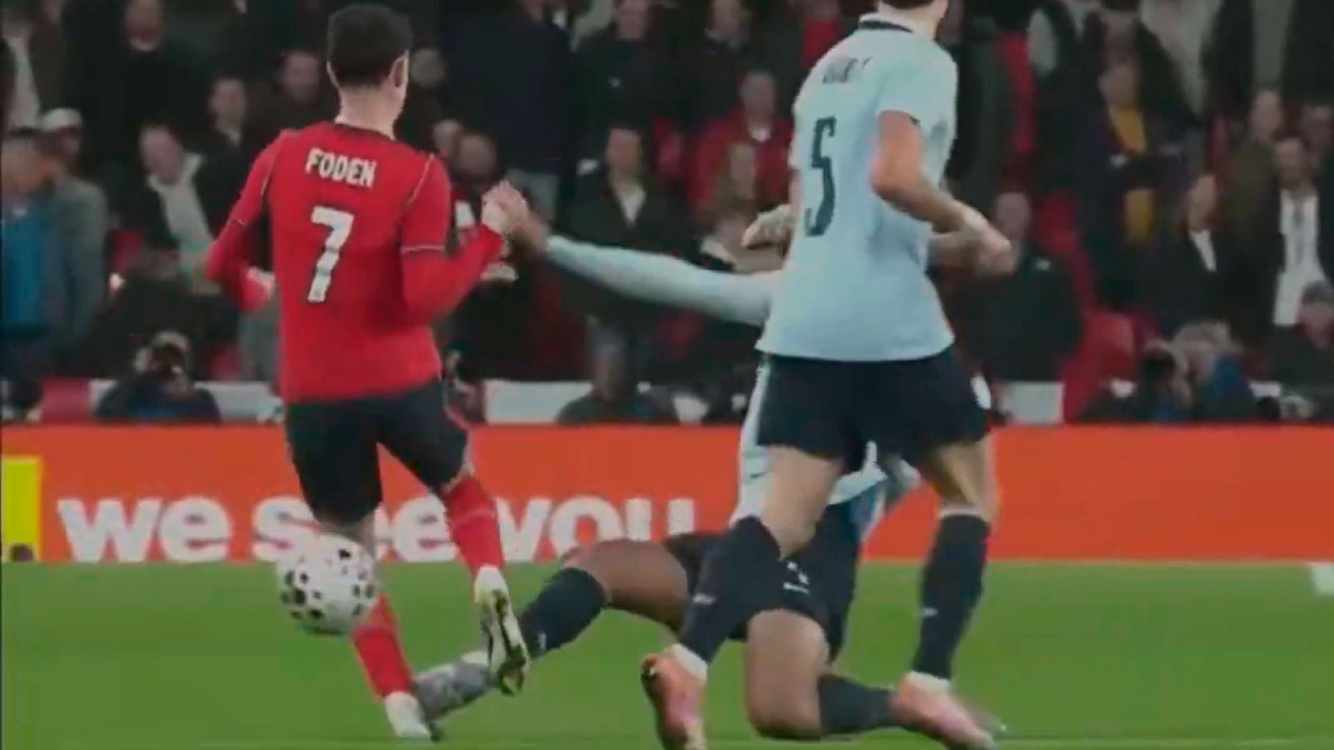 La terrible entrada de Ronald Araujo sobre Phil Foden en el amistoso Inglaterra-Uruguay: "¿Para demostrar qué exactamente?"