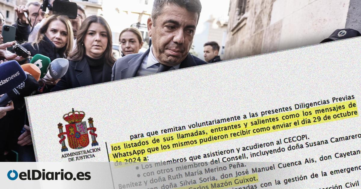La jueza de la dana pone al testigo Mazón ante el dilema de dar sus whatsapps y confesar sus pasos tras El Ventorro