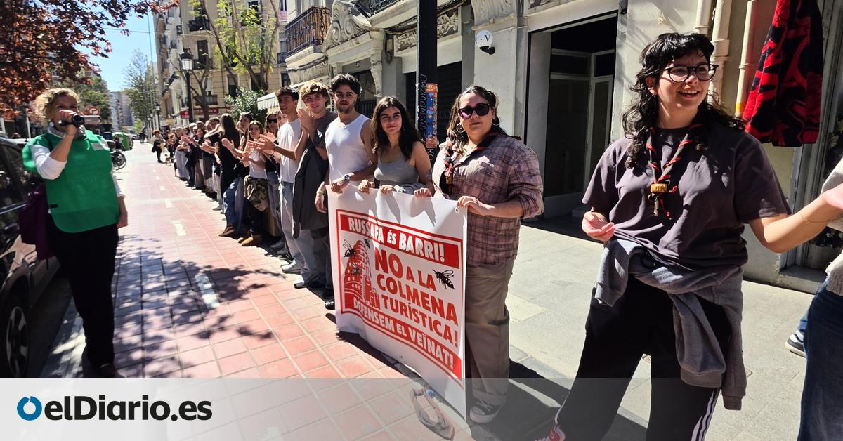 Una cadena humana contra una colmena de apartamentos turísticos en València vuelve a cuestionar la estrategia de Catalá