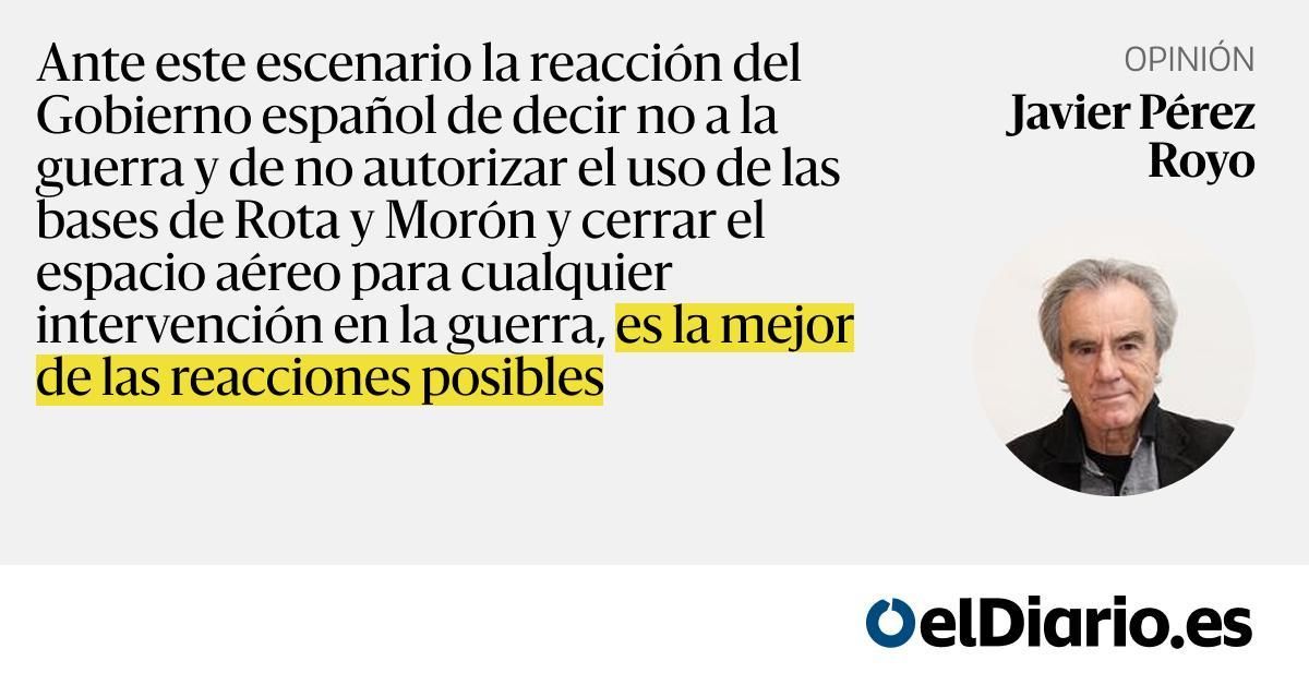 Ante este escenario la reacción del Gobierno español de decir no a la guerra y de no autorizar el uso de las bases de Rota y Morón y cerrar el espacio aéreo para cualquier intervención en la guerra, es la mejor de las reacciones posibles...