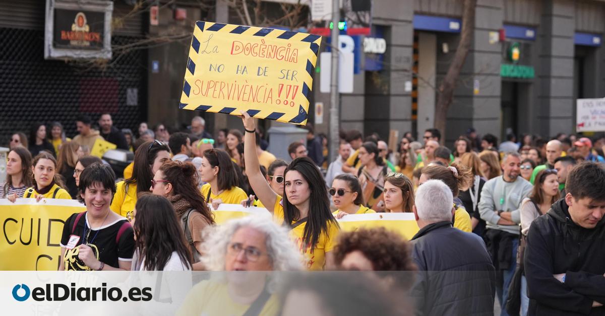 El pulso de los docentes a la Generalitat alcanza ahora a las salidas con pernocta, a las que muchos renunciarán si no se atienden sus reivindicaciones de aumentos de sueldo y rebajas de ratios — La huelga saca a miles de docentes a la calle para exigir mejoras en salarios y en el aula...