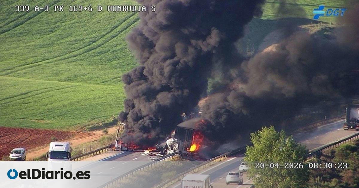 Cortada la A-3 en Cuenca sentido Madrid por la colisión de dos camiones: hay dos heridos
