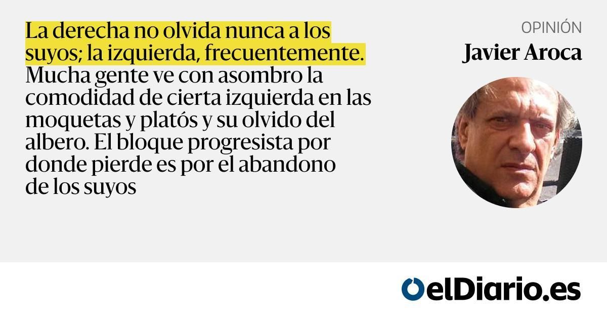 La derecha no olvida nunca a los suyos; la izquierda, frecuentemente. Mucha gente ve con asombro la comodidad de cierta izquierda en las moquetas y platós y su olvido del albero. El bloque progresista por donde pierde es por el abandono de los suyos...