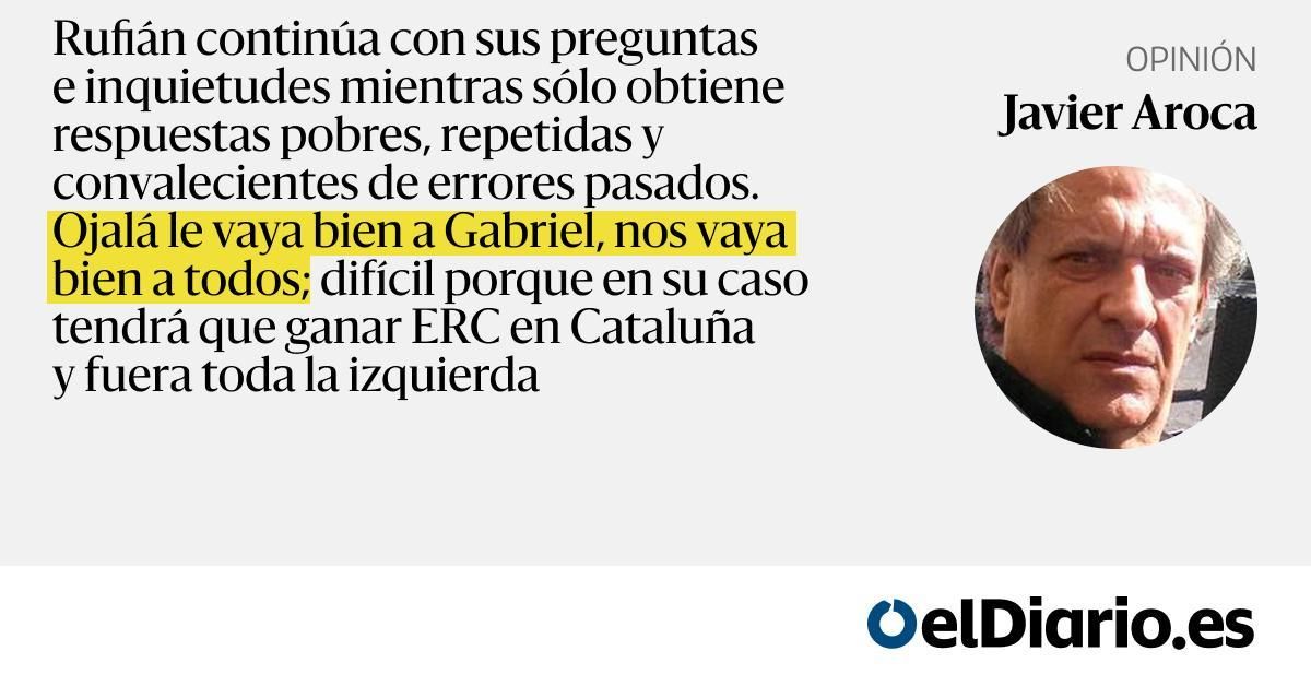 Ojalá le vaya bien a Gabriel, nos vaya bien a todos; difícil porque en su caso tendrá que ganar ERC en Cataluña y fuera toda la izquierda Opinión — Sostiene Rufián...