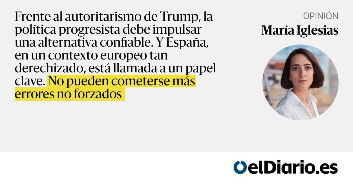Frente al autoritarismo de Trump, la política progresista debe impulsar una alternativa confiable. Y España, en un contexto europeo tan derechizado, está llamada a un papel clave. No pueden cometerse más errores no forzados — Groenlandia es la punta de lanza de Trump para destruir la OTAN y deslegit...