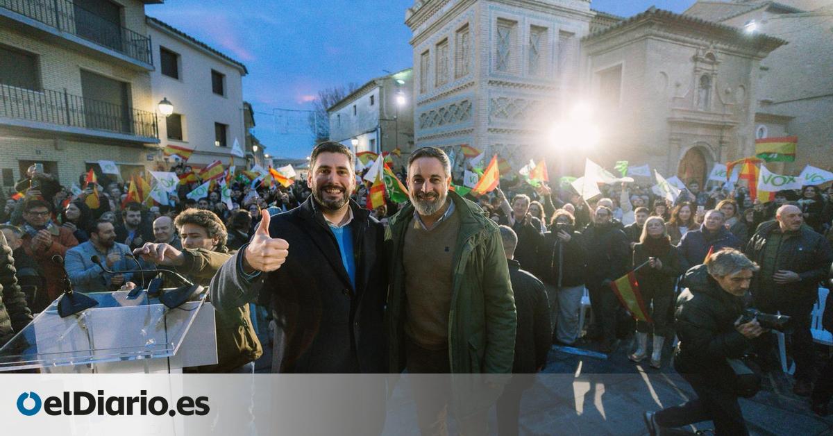 El líder de Vox ha participado en un acto en Utebo en el que ha insistido en que, si depende de la extrema derecha, “no habrá más” menores migrantes en la comunidad — Abascal alienta el sorpaso a Feijóo y amaga con exigir al PP gobiernos proporcionales en las comunidades...