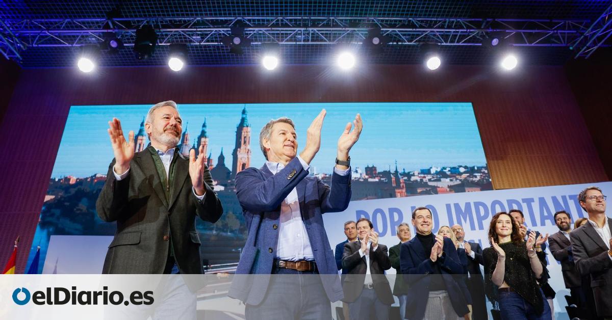 El líder de los populares reúne en la capital aragonesa, a tres semanas del 8-F, a todos los barones regionales para firmar la Declaración de Zaragoza. “Cuando tú a un ministro no le entiendes, mala seña. Pero cuando es socialista y es la ministra de Hacienda, te quiere joder”, afirma Jorge Azcón —...