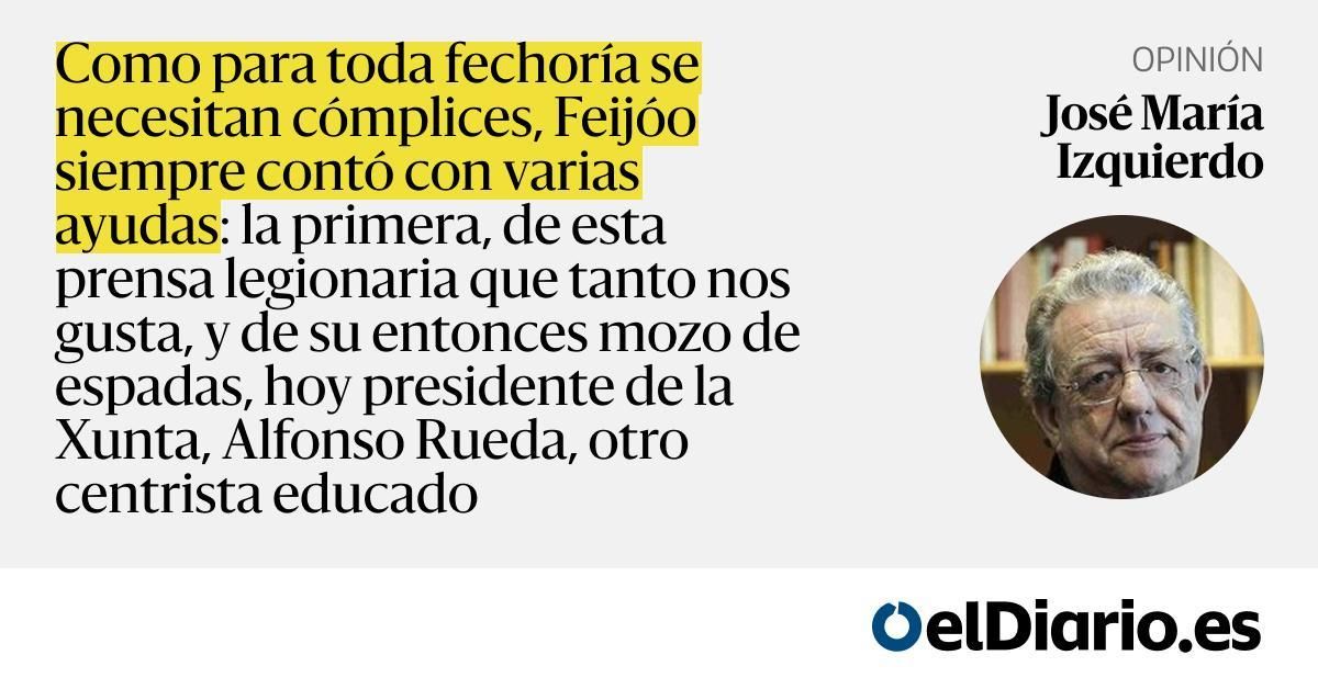 Como para toda fechoría se necesitan cómplices, Feijóo siempre contó con varias ayudas: la primera, de esta prensa legionaria que tanto nos gusta, y de su entonces mozo de espadas, hoy presidente de la Xunta, Alfonso Rueda, otro centrista educado...