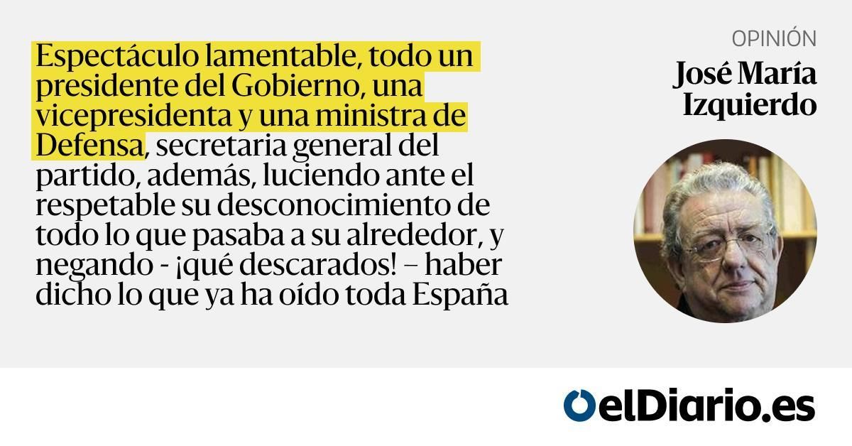 Espectáculo lamentable, todo un presidente del Gobierno, una vicepresidenta y una ministra de Defensa, secretaria general del partido, además, luciendo ante el respetable su desconocimiento de todo lo que pasaba a su alrededor, y negando - ¡qué descarados! – haber dicho lo que ya ha oído toda España...