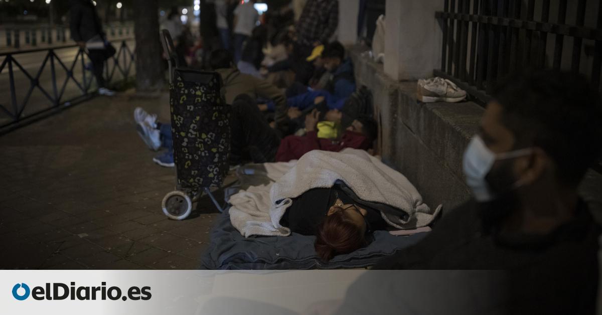 Cada noche, cientos de migrantes hacen colas de hasta 24 horas frente a los servicios sociales para pedir el “informe de vulnerabilidad”, exigido para la regularización extraordinaria. Así fue una de las noches de espera en una de las oficinas de Madrid — Por qué un informe para la regularización ge...