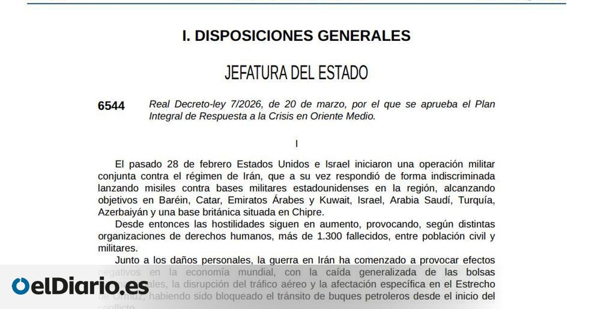 El Boletín Oficial del Estado publica este sábado a primera hora ambos textos para paliar las consecuencias de la guerra de Irán: uno con medidas económicas generales como la rebaja del IVA un 10% de los carburantes y otro con la congelación de los alquileres por dos años — El Gobierno aprueba dos d...