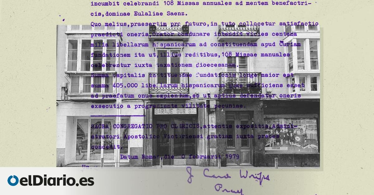 Usa ese documento para justificar que no haya hecho 108 misas anuales en memoria de la donante, lo que podría implicar la anulación del testamento y un cambio en la propiedad — Vitoria puede perder en los tribunales un edificio por no haber hecho 108 misas al año en memoria de la mujer que se lo leg...
