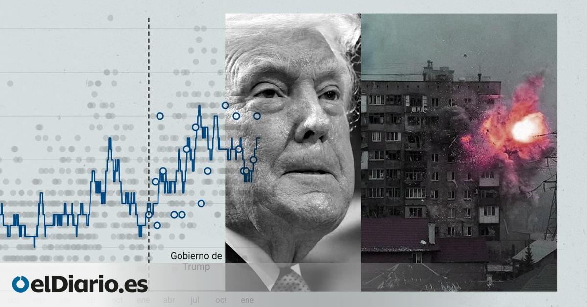 En 2025, en pleno impulso diplomático, el Ejército ruso intensificó sus bombardeos aéreos y con drones, llevando los ataques a un nuevo máximo en 2025, según los datos de ACLED analizados por elDiario.es, que también apuntan a un aumento de los ataques a civiles — Trump exhibe con la guerra de Ucran...