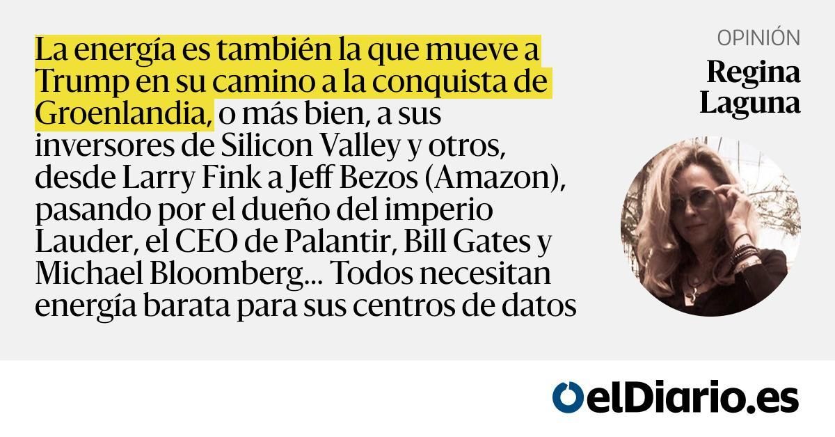 La energía es también la que mueve a Trump en su camino a la conquista de Groenlandia, o más bien, a sus inversores de Silicon Valley y otros, desde Larry Fink a Jeff Bezos (Amazon), pasando por el dueño del imperio Lauder, el CEO de Palantir, Bill Gates y Michael Bloomberg… Todos necesitan energía...