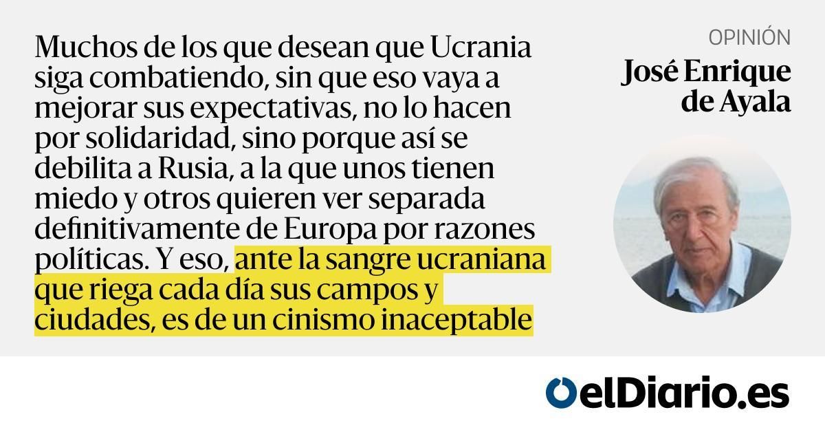 Muchos de los que desean que Ucrania siga combatiendo, sin que eso vaya a mejorar sus expectativas, no lo hacen por solidaridad, sino porque así se debilita a Rusia, a la que unos tienen miedo y otros quieren ver separada definitivamente de Europa por razones políticas. Y eso, ante la sangre ucrania...