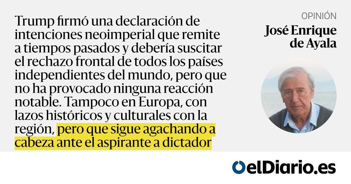 Trump firmó una declaración de intenciones neoimperial que remite a tiempos pasados y debería suscitar el rechazo frontal de todos los países independientes del mundo, pero que no ha provocado ninguna reacción notable. Tampoco en Europa, que tiene indudables lazos históricos y culturales con la regi...