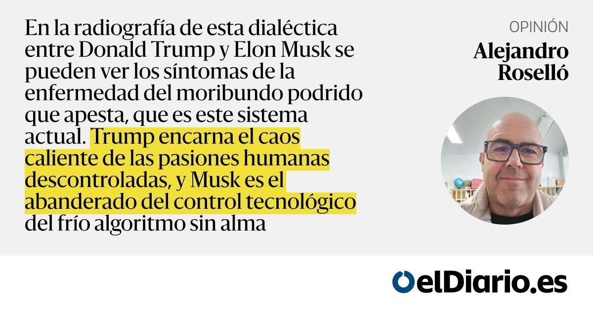 En la radiografía de esta dialéctica entre Donald Trump y Elon Musk se pueden ver los síntomas de la enfermedad del moribundo podrido que apesta, que es este sistema actual. Trump encarna el caos caliente de las pasiones humanas descontroladas, y Musk es el abanderado del control tecnológico del frí...