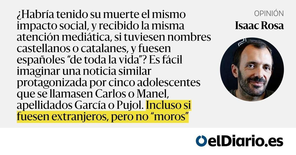 ¿Habría tenido su muerte el mismo impacto social, y recibido la misma atención mediática, si tuviesen nombres castellanos o catalanes, y fuesen españoles “de toda la vida”? Es fácil imaginar una noticia similar protagonizada por cinco adolescentes que se llamasen Carlos o Manel, apellidados García o...
