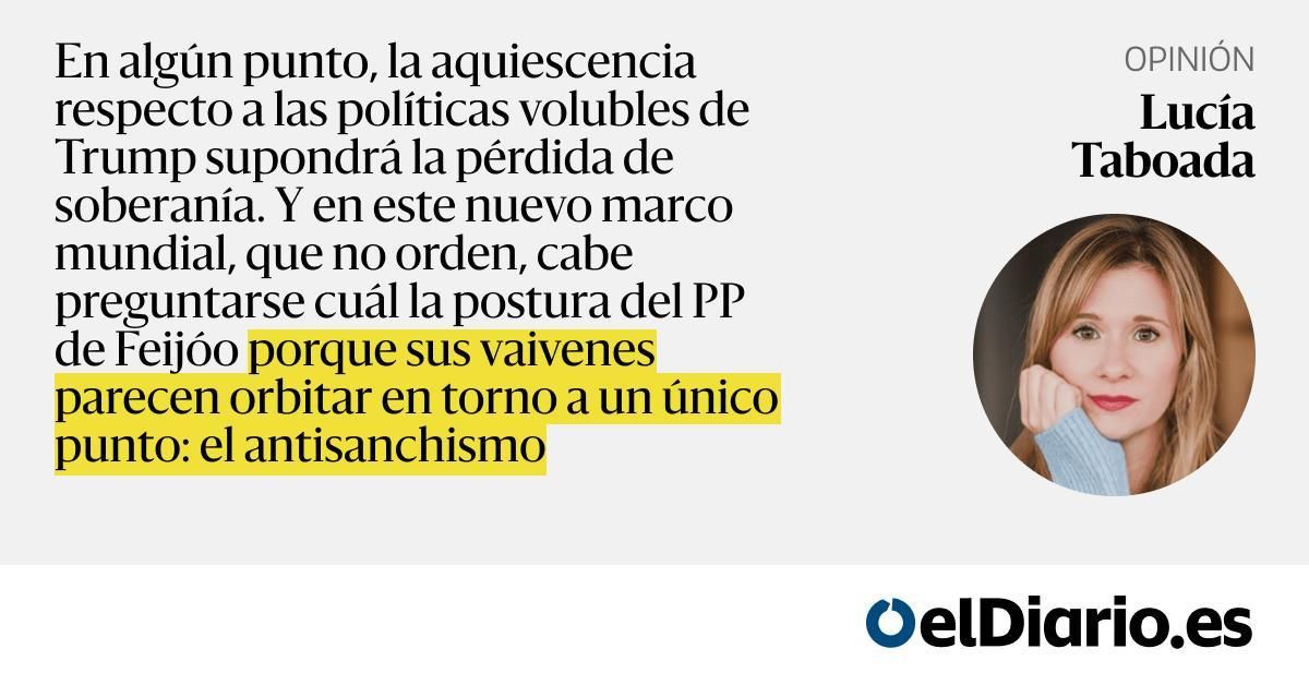 En algún punto, la aquiescencia respecto a las políticas volubles de Trump supondrá la pérdida de soberanía. Y en este nuevo marco mundial, que no orden, cabe preguntarse cuál la postura del PP de Feijóo porque sus vaivenes parecen orbitar en torno a un único punto: el antisanchismo — Ester Muñoz y...