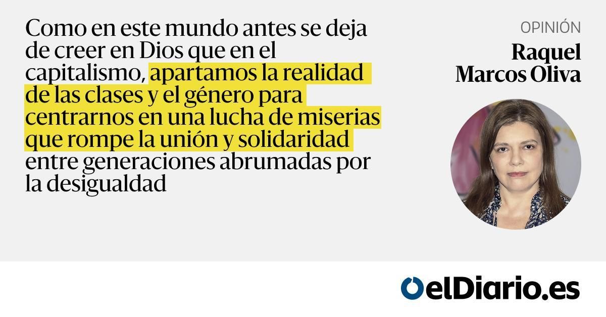 Como en este mundo antes se deja de creer en Dios que en el capitalismo, apartamos la realidad de las clases y el género para centrarnos en una lucha de miserias que rompe la unión y solidaridad entre generaciones abrumadas por la desigualdad...