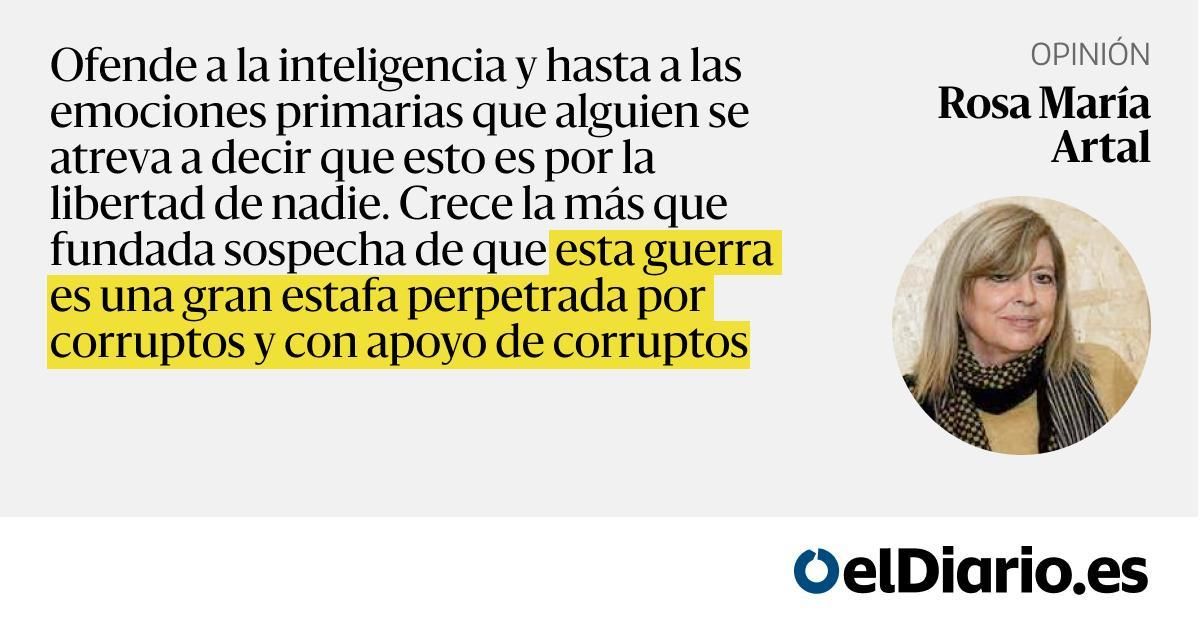 Ofende a la inteligencia y hasta a las emociones primarias que alguien se atreva a decir que esto es por la libertad de nadie. Crece la más que fundada sospecha de que esta guerra es una gran estafa perpetrada por corruptos y con apoyo de corruptos...