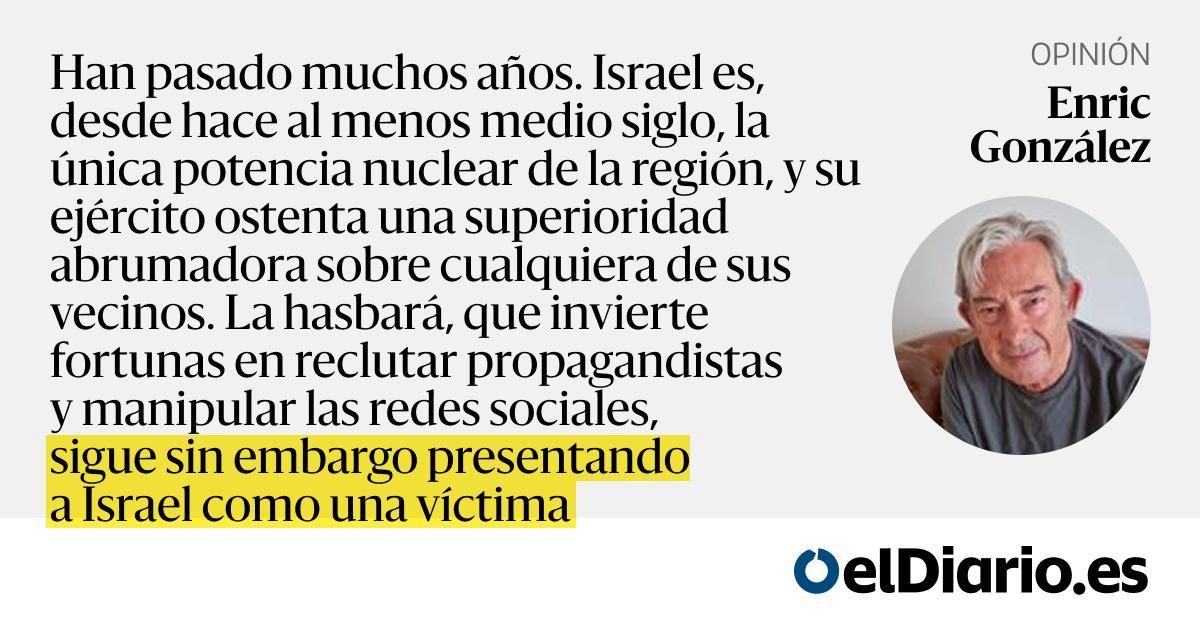 Han pasado muchos años. Israel es, desde hace al menos medio siglo, la única potencia nuclear de la región, y su ejército ostenta una superioridad abrumadora sobre cualquiera de sus vecinos. La hasbará, que invierte fortunas en reclutar propagandistas y manipular las redes sociales, sigue sin embarg...