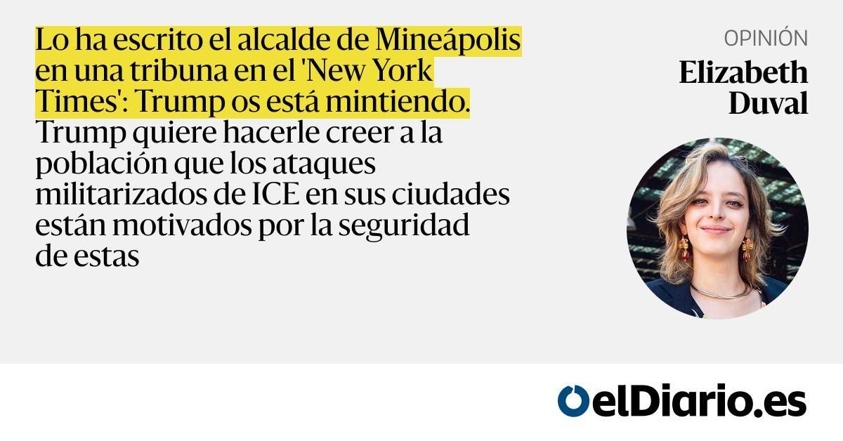 Lo ha escrito el alcalde de Mineápolis en una tribuna en el 'New York Times': Trump os está mintiendo. Trump quiere hacerle creer a la población que los ataques militarizados de ICE en sus ciudades están motivados por la seguridad de estas — Las últimas palabras de Renée Nicole Good al agente del IC...
