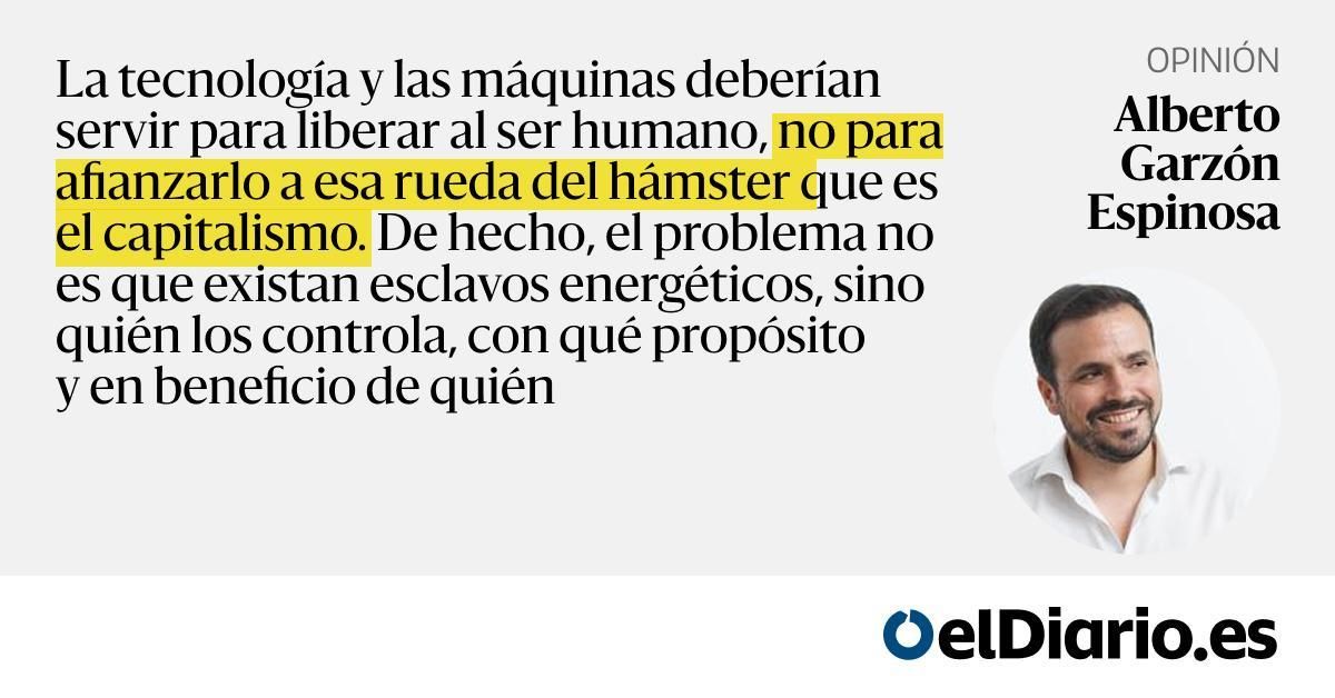 La tecnología y las máquinas deberían servir para liberar al ser humano, no para afianzarlo a esa rueda del hámster que es el capitalismo. De hecho, el problema no es que existan esclavos energéticos, sino quién los controla, con qué propósito y en beneficio de quién...