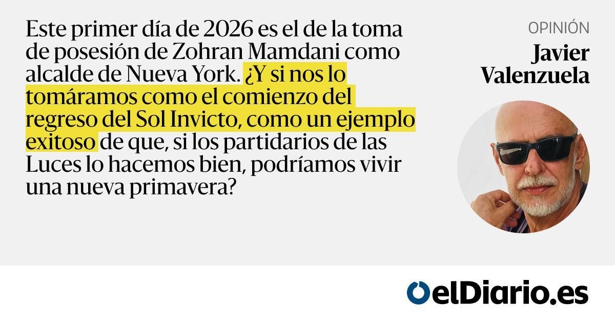 Este primer día de 2026 es el de la toma de posesión de Zohran Mamdani como alcalde de Nueva York. ¿Y si nos lo tomáramos como el comienzo del regreso del Sol Invicto, como un ejemplo exitoso de que, si los partidarios de las Luces lo hacemos bien, podríamos vivir una nueva primavera?...