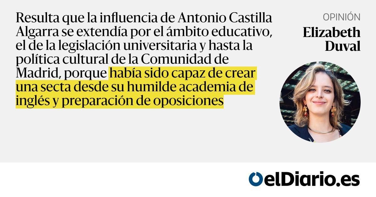 Resulta que la influencia de Antonio Castilla Algarra se extendía por el ámbito educativo, el de la legislación universitaria y hasta la política cultural de la Comunidad de Madrid, porque había sido capaz de crear una secta desde su humilde academia de inglés y preparación de oposiciones — La caída...