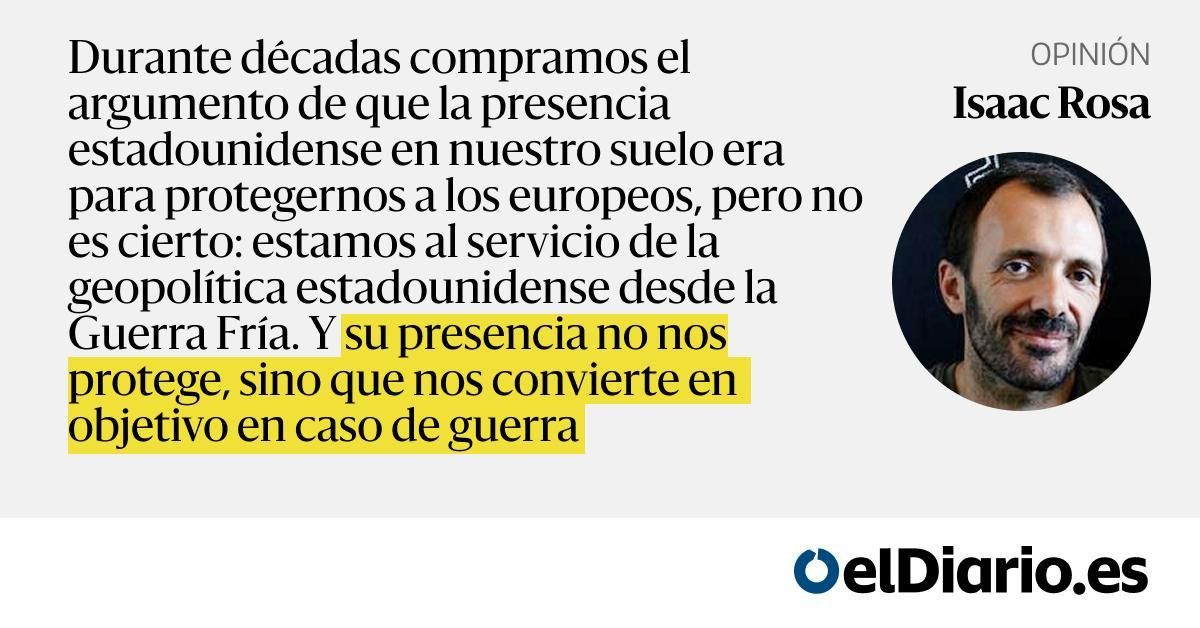 Durante décadas compramos el argumento de que la presencia estadounidense en nuestro suelo era para protegernos a los europeos, pero no es cierto: estamos al servicio de la geopolítica estadounidense desde la Guerra Fría. Y su presencia no nos protege, sino que nos convierte en objetivo en caso de g...