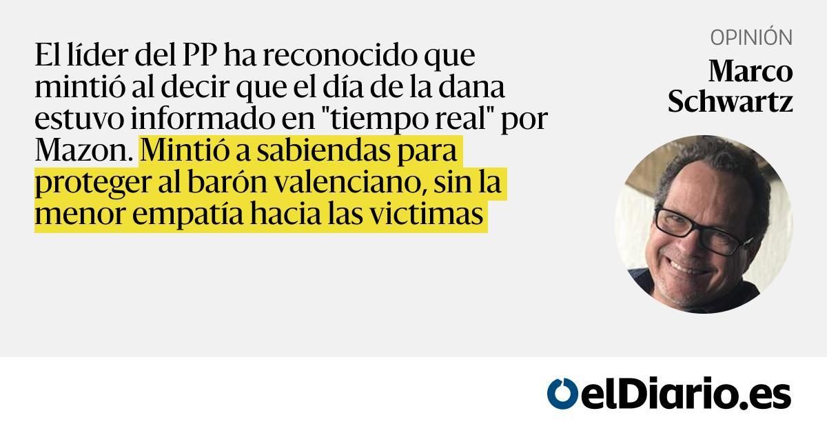 El líder del PP ha reconocido que mintió al decir que el dia de la dana estuvo informado en “tiempo real” por Mazon. Mintió a sabiendas para proteger al barón valenciano, sin la menor empatía hacia las victimas...