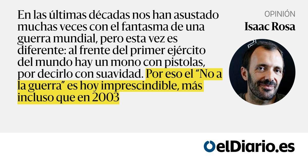 En las últimas décadas nos han asustado muchas veces con el fantasma de una guerra mundial, pero esta vez es diferente: al frente del primer ejército del mundo hay un mono con pistolas, por decirlo con suavidad. Por eso el “No a la guerra” es hoy imprescindible, más incluso que en 2003...