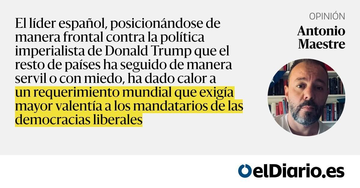 El líder español, posicionándose de manera frontal contra la política imperialista de Donald Trump que el resto de países ha seguido de manera servil o con miedo, ha dado calor a un requerimiento mundial que exigía mayor valentía a los mandatarios de las democracias liberales — Sánchez responde a Tr...