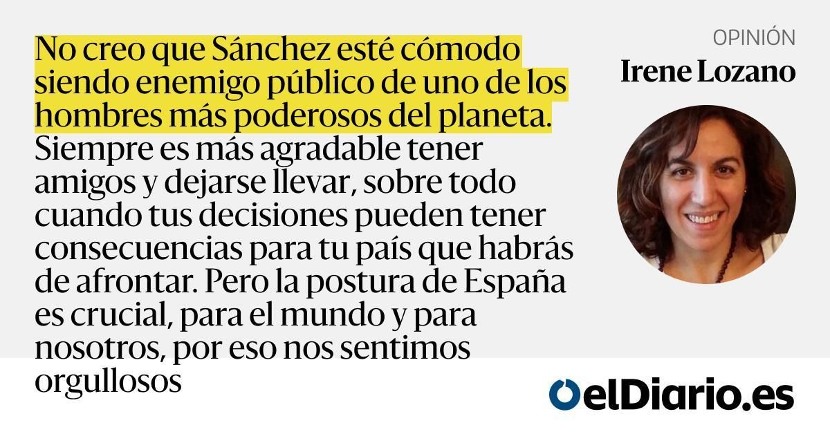 No creo que Sánchez esté cómodo siendo enemigo público de uno de los hombres más poderosos del planeta. Siempre es más agradable tener amigos y dejarse llevar, sobre todo cuando tus decisiones pueden tener consecuencias para tu país que habrás de afrontar. Pero la postura de España es crucial, para...