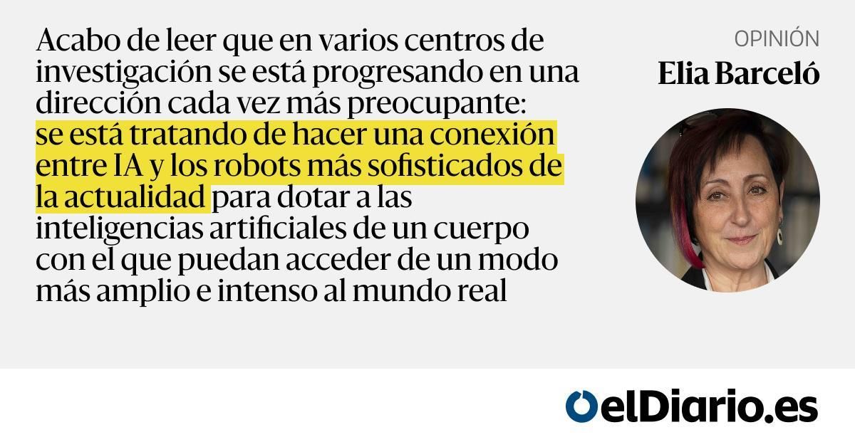 Acabo de leer que en varios centros de investigación se está progresando en una dirección cada vez más preocupante: se está tratando de hacer una conexión entre IA y los robots más sofisticados de la actualidad para dotar a las inteligencias artificiales de un cuerpo con el que puedan acceder de un...
