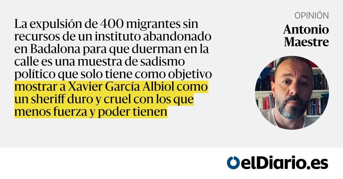 La expulsión de 400 migrantes sin recursos de un instituto abandonado en Badalona para que duerman en la calle es una muestra de sadismo político que solo tiene como objetivo mostrar a Xavier García Albiol como un sheriff duro y cruel con los que menos fuerza y poder tienen — Los migrantes desalojad...