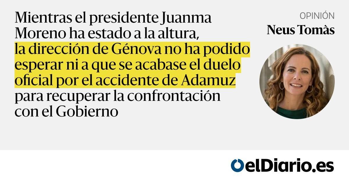 Mientras el presidente Juanma Moreno ha estado a la altura, la dirección de Génova no ha podido esperar ni a que se acabase el duelo oficial por el accidente de Adamuz para recuperar la confrontación con el Gobierno — El PP ve “ejemplar” su papel en Adamuz: “No somos el partido que llama asesino a u...