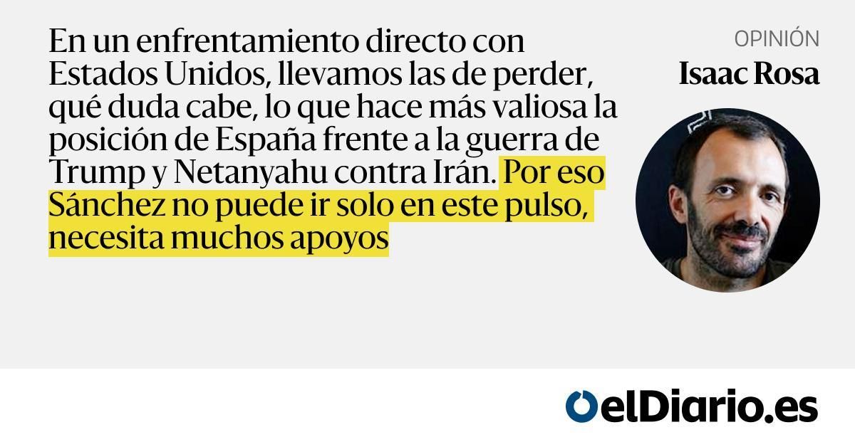 En un enfrentamiento directo con Estados Unidos, llevamos las de perder, qué duda cabe, lo que hace más valiosa la posición de España frente a la guerra de Trump y Netanyahu contra Irán. Por eso Sánchez no puede ir solo en este pulso, necesita muchos apoyos...